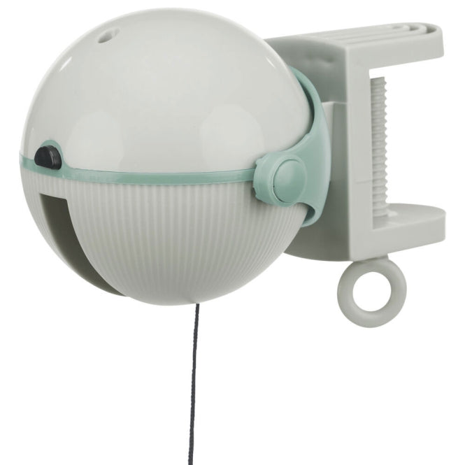 Our automatic cat toy "Catch It" can be easily attached to various surfaces up to 4 cm thick. A battery-operated mechanism causes the toy, attached to a string, to move up and down at irregular intervals, stimulating your feline friend's natural instincts to play and catch. For variety, you can choose between a fish or feather toy – whichever your cat prefers. The toy automatically switches off after 15 minutes.