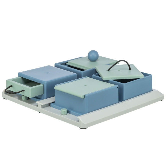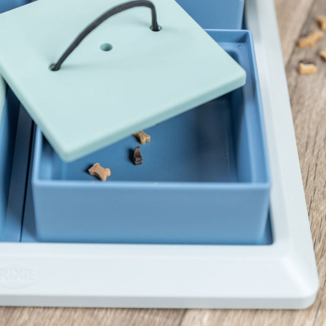 The Poker Box 1 is a unique toy that combines fun and strategy. The game box features four compartments that can be opened in different ways. Treats are hidden inside these compartments, which your dog will try to find. With a little practice, your dog will learn to open the compartments and get to the treats.